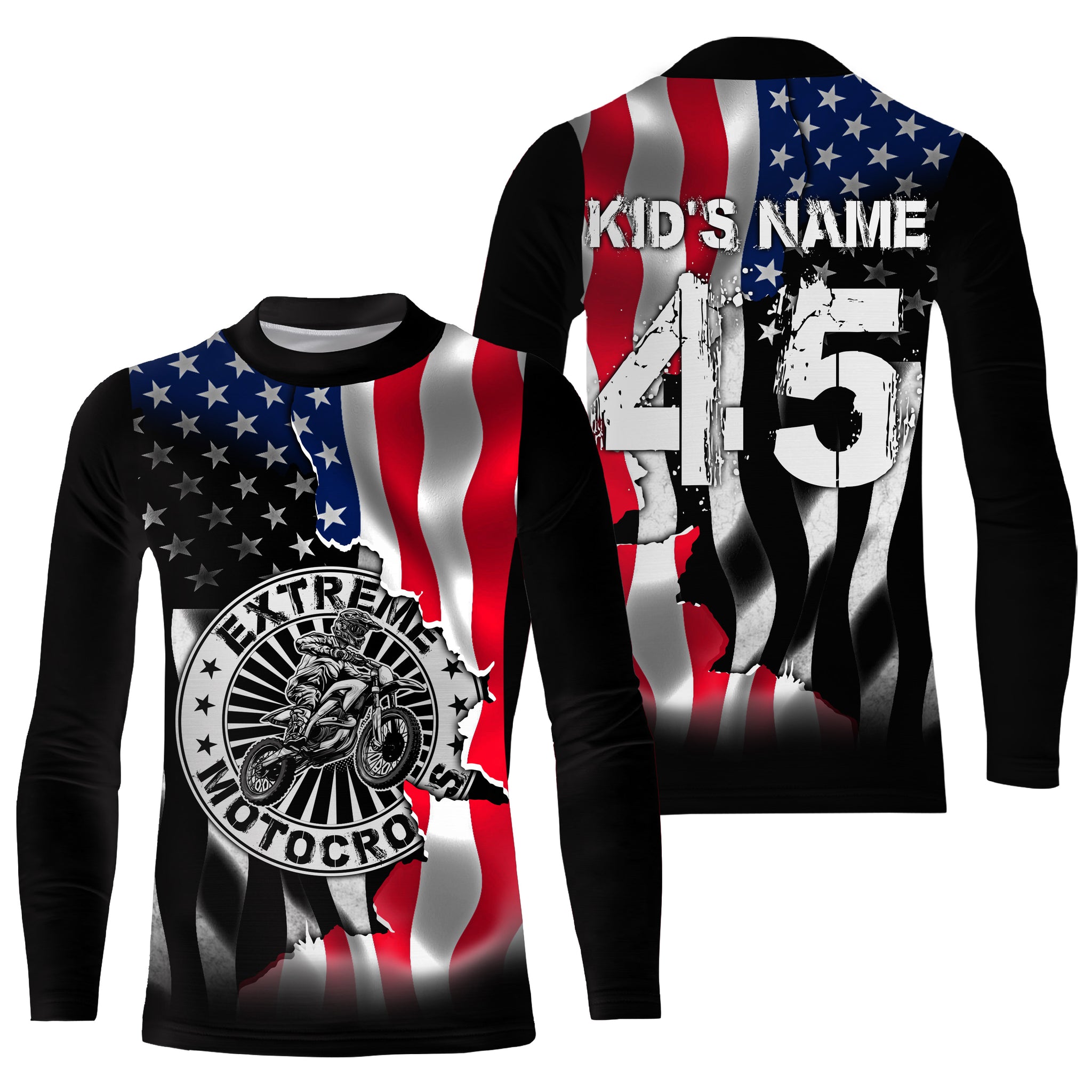 US flag Extreme Motocross personalized jersey UPF30+ Patriotic motorcycle long sleeves dirt bike NMS1059