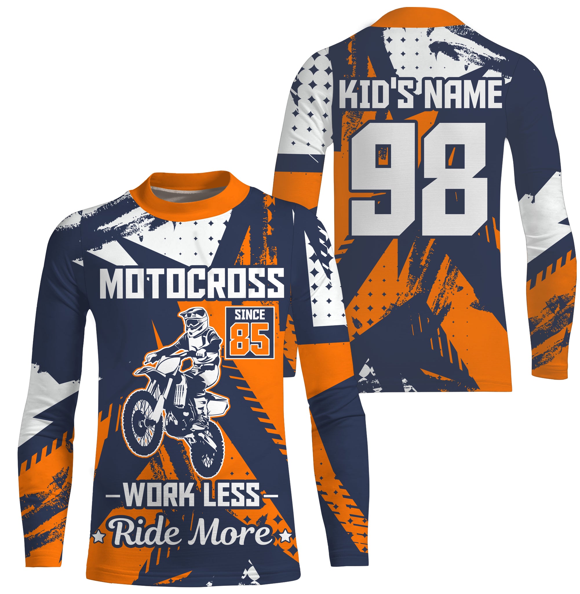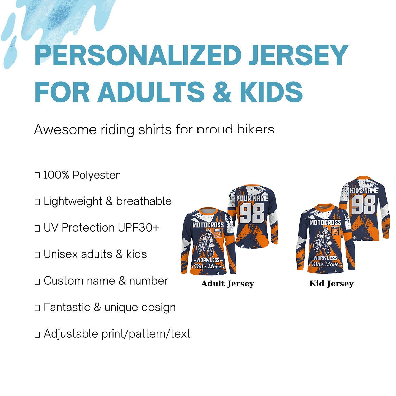 Work Less Ride More kid adult Motocross jersey personalized UPF30+ dirt bike long sleeves racing NMS1097