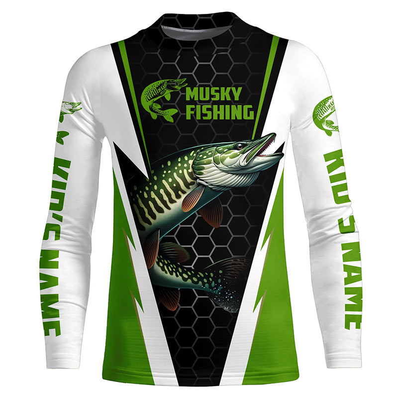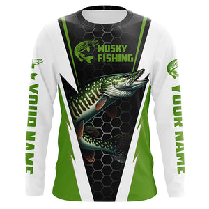 Personalized Musky Fishing Long Sleeve Tournament Fishing Shirts, Musky Fishing Jerseys |Green IPHW6142