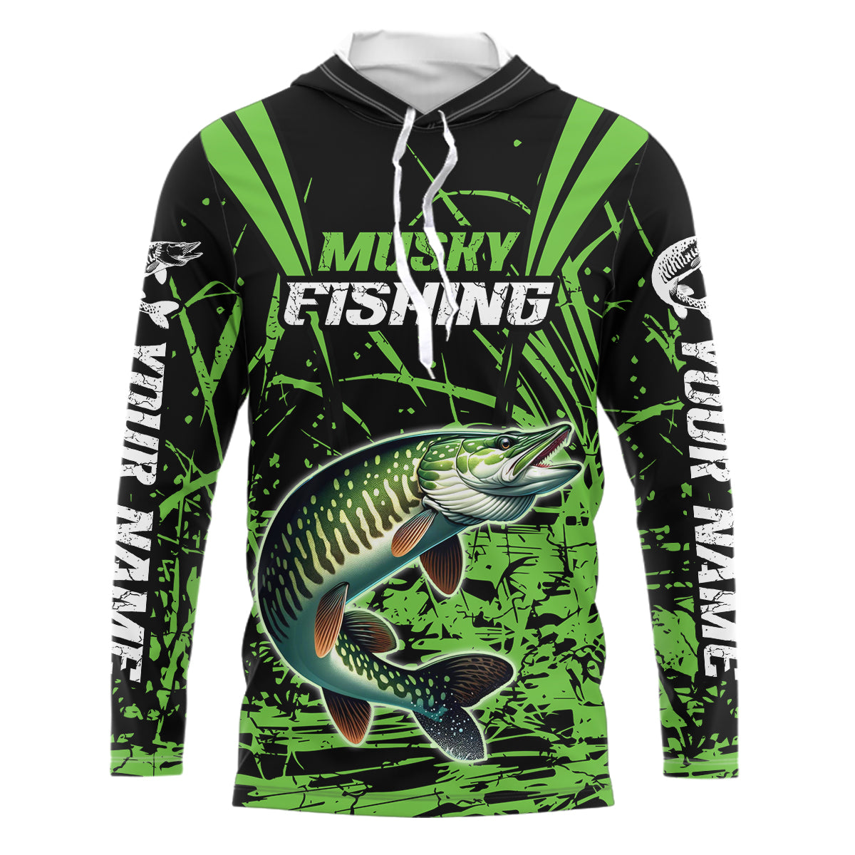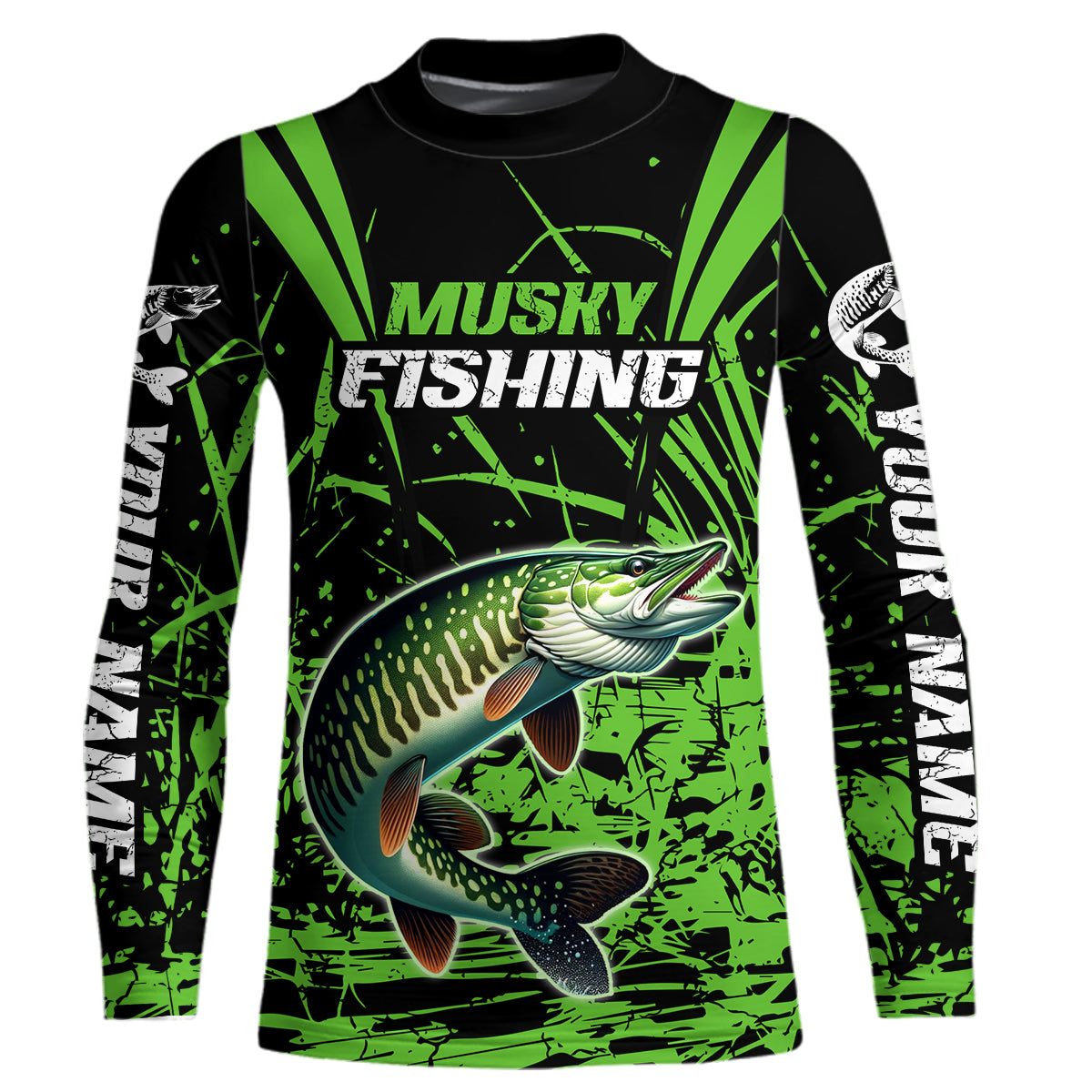 Customized Musky Fishing Long Sleeve Tournament Shirts, Muskie Fishing Gifts For Fisherman | Green IPHW6648