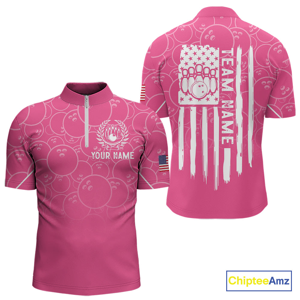 Pink bowling camo Mens bowling shirts Custom American flag patriotic bowling team league jerseys NQS10714