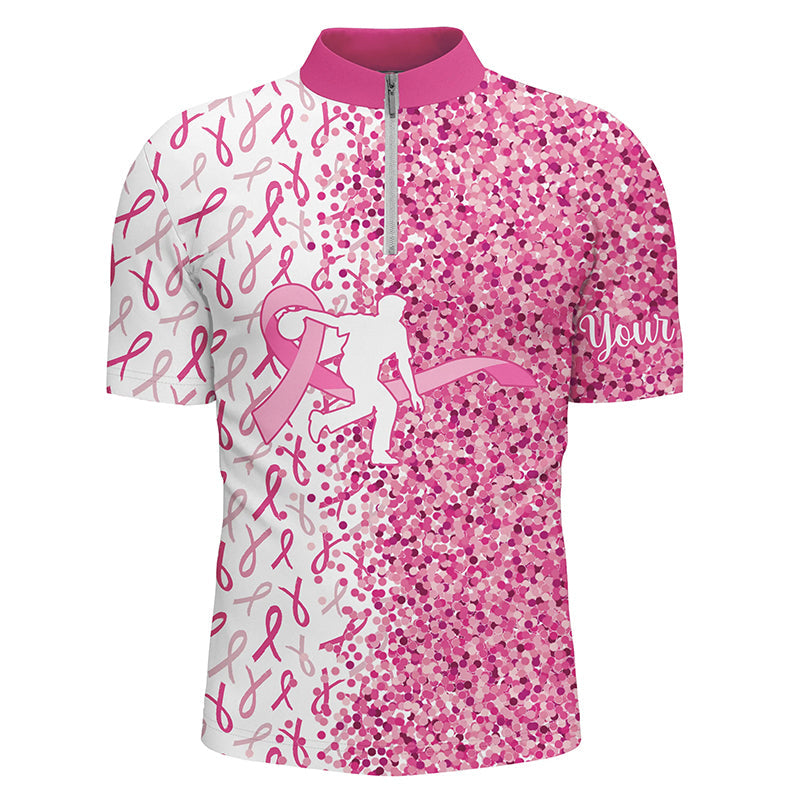 Pink glitter ribbon Bowling Shirts For Men Custom Breast cancer bowling shirts gift for bowlers NQS8261
