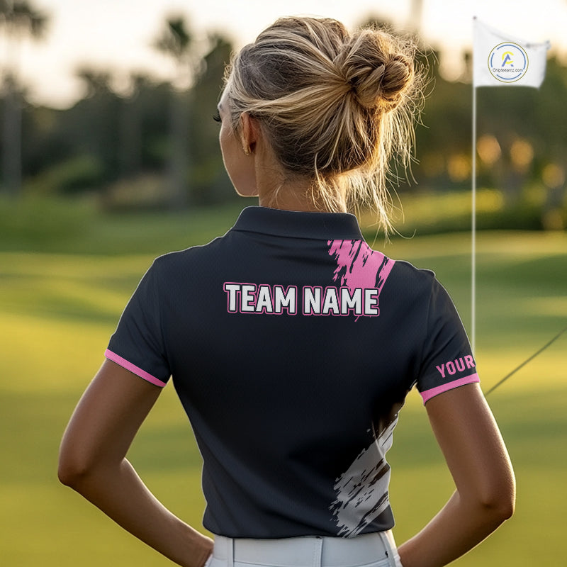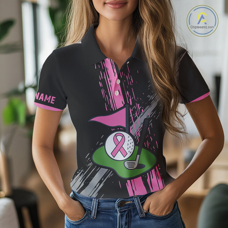 Black and pink ribbon Breast Cancer Awareness golf shirts custom Women golf polo shirt best golf gift NQS10196