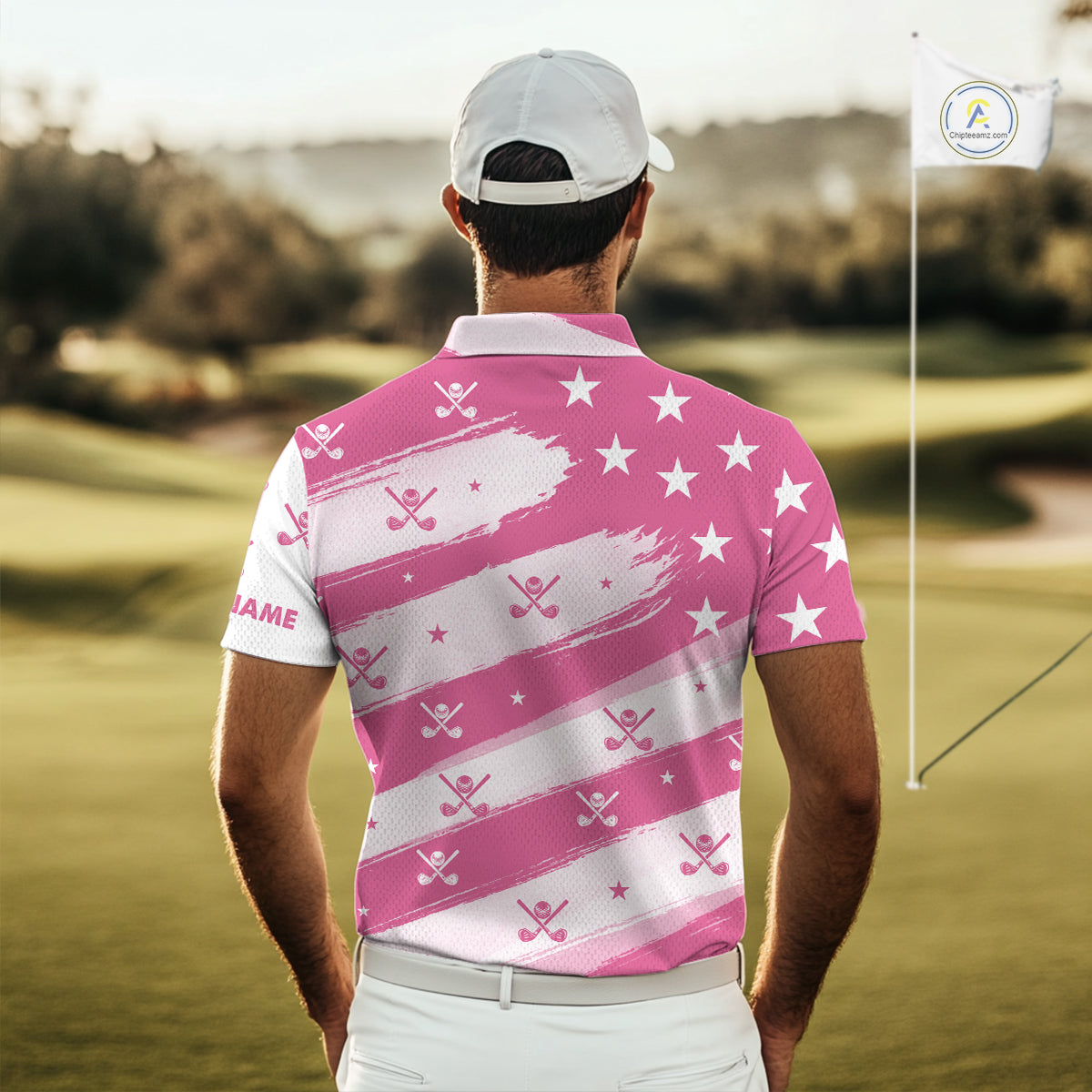 Pink American Flag Men golf polo shirt custom patriotic golf outfits men, cool golf gifts NQS10092