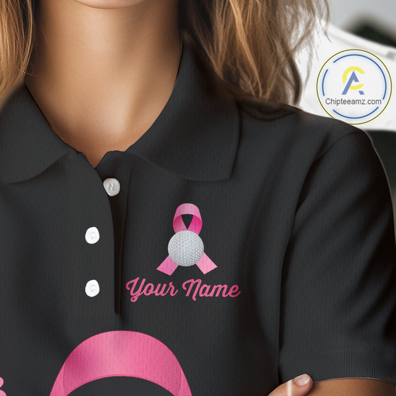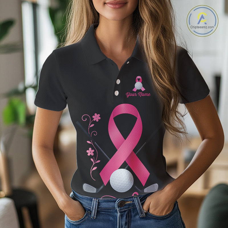 Pink ribbon golf ball clubs Black Women polo golf shirts Custom Breast cancer team golf jerseys NQS10507