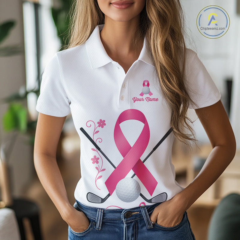 Pink ribbon golf ball clubs Women polo golf shirts Custom Breast cancer awareness team golf jerseys NQS10506
