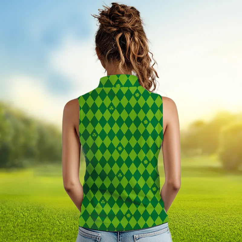 Personalized Green argyle pattern Women sleeveless polo shirt Custom St Patrick day golf top for women NQS9545