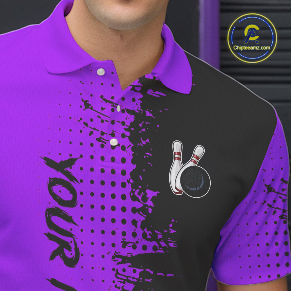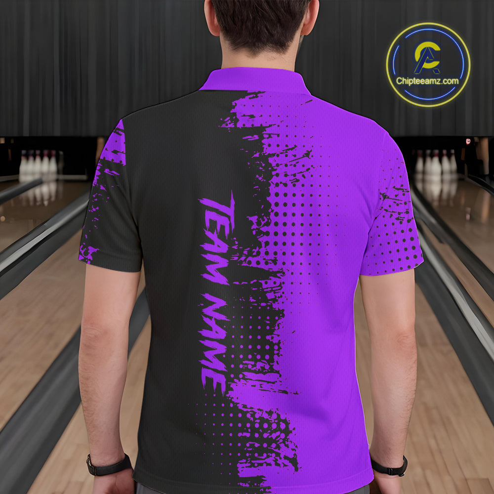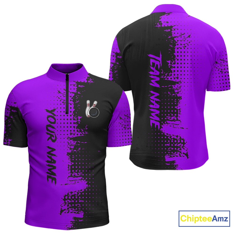 Black and Purple Bowling Polo, Quarter Zip shirts for Men Custom Bowling Team Jerseys NQS10221