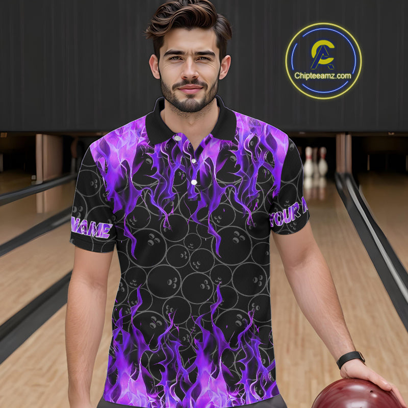 Black and Purple Flame camo Men bowling shirts Custom Flame Bowling Shirt Team Bowling Jersey NQS10666