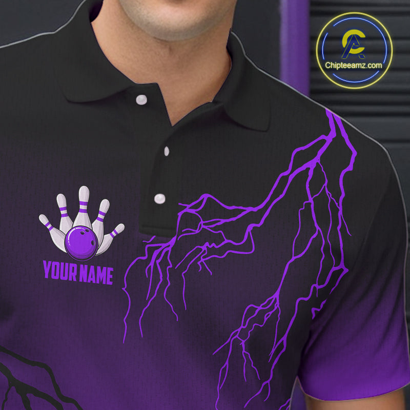 Black and Purple gradient Lightning thunder storm Bowling shirts for Men Custom Bowling Team Jerseys NQS10136
