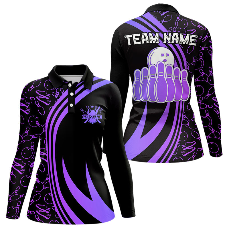 Black Women bowling shirts Custom Purple neon team league bowling jerseys, gifts for bowlers NQS9667