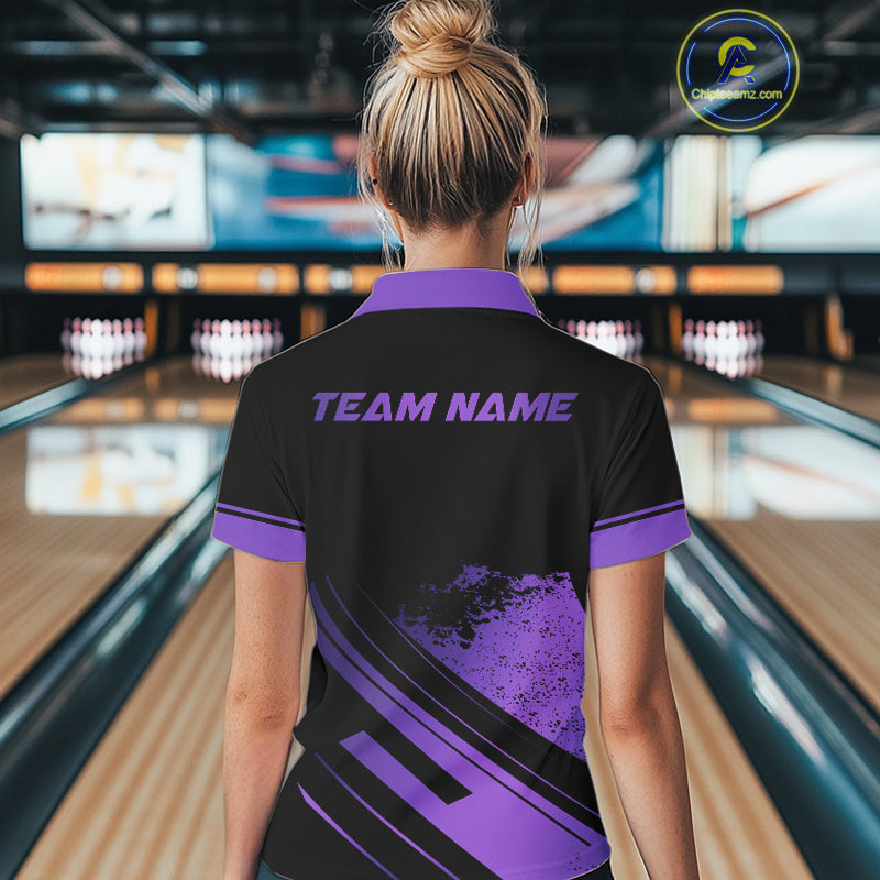 Custom Black And Purple Bowling Team Polo, Quarter-Zip Shirts For Women, Personalized Bowling Jerseys NQS10541