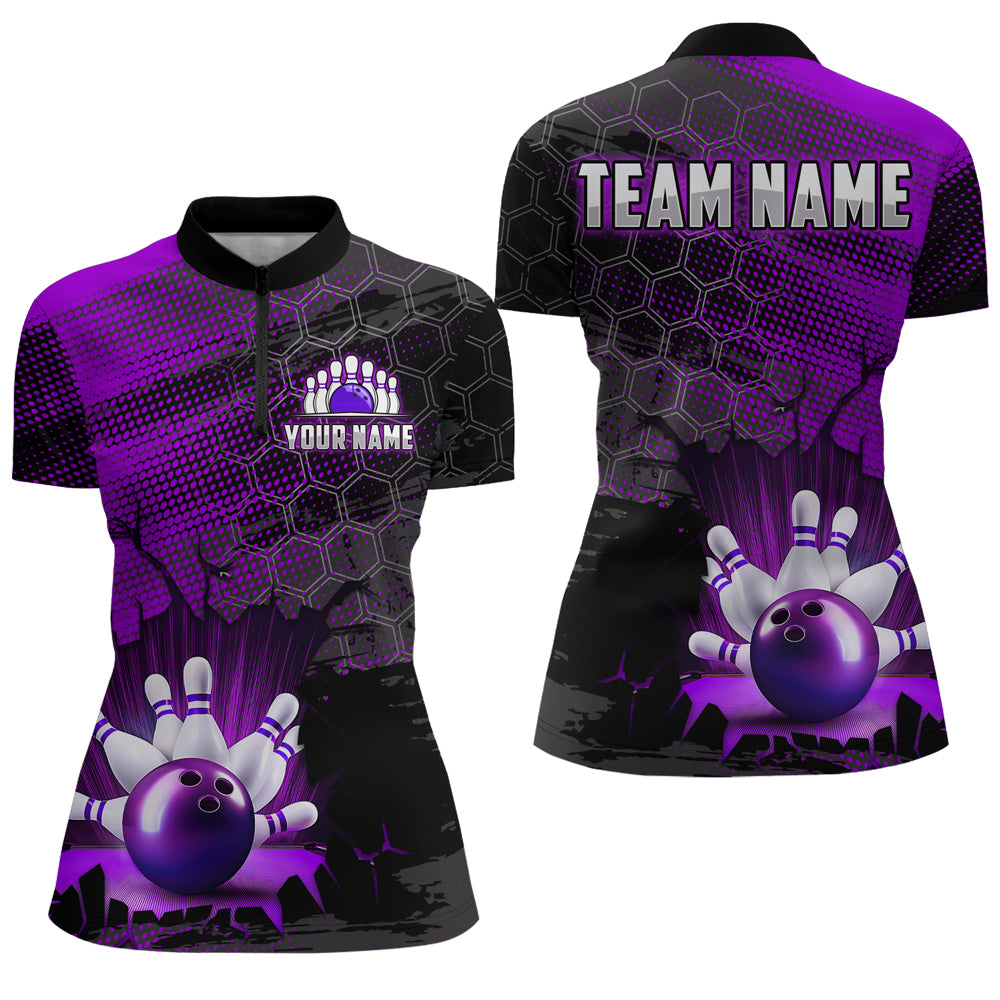 Custom Purple Bowling Shirts For Men & Women Bowling Team League Jersey Unisex Quarter-Zip BDT533