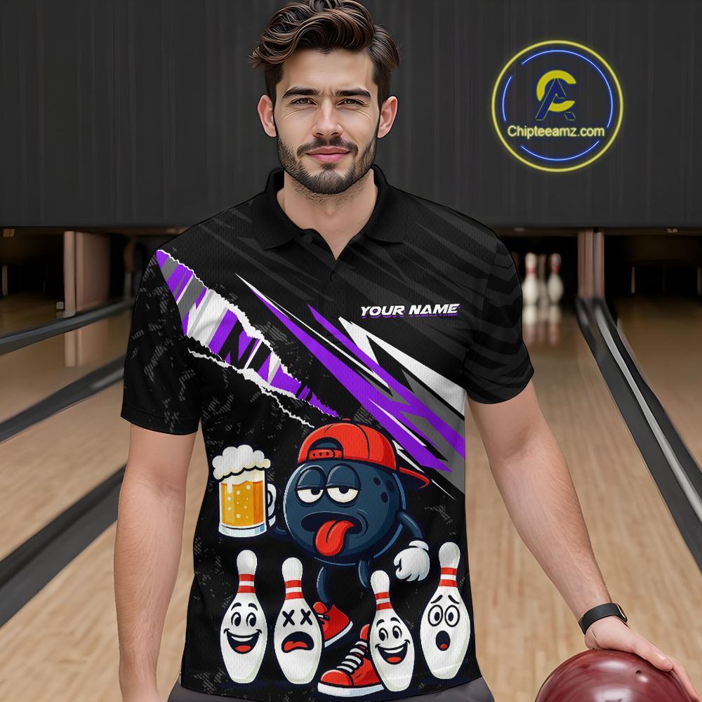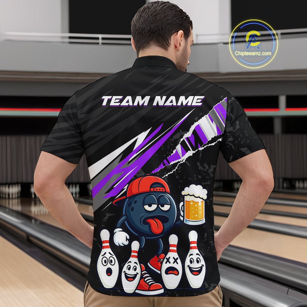 Custom Purple Beer Bowling Jersey for Men Bowling Team Shirts Bowling Uniform Polo & 1/4 Zip HNT133