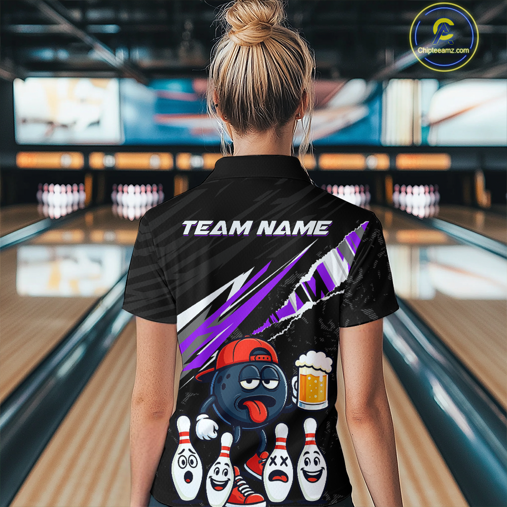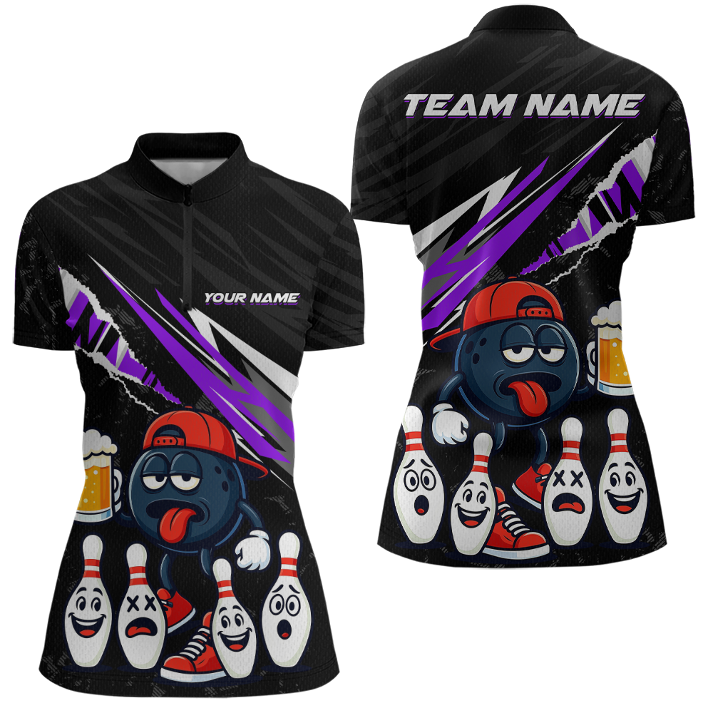 Custom Purple Beer Bowling Jersey for Women Bowling Team Shirts Bowling Uniform Polo & 1/4 Zip HNT133