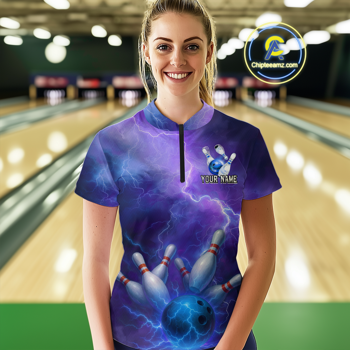 Custom Purple Lightning Bowling Shirts for Men Women Team MBL157