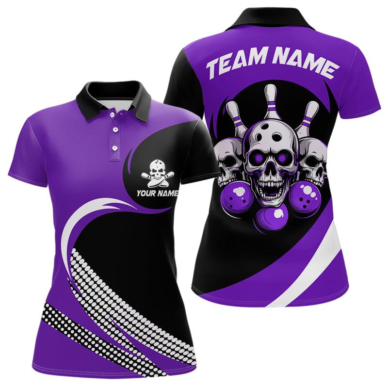 Custom Purple Skull Bowling Shirt Polo Bowling Jersey for Men Women Bowling Outfit QZT671