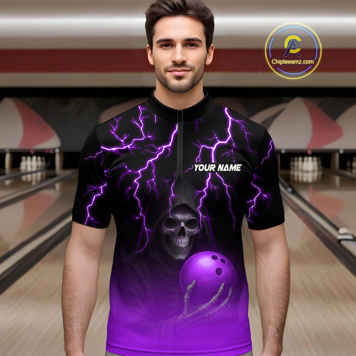 Custom Purple Thunder Skeleton Bowling Jersey for Men Bowling Polo & 1/4 Zip Bowling Team Shirts HNT108