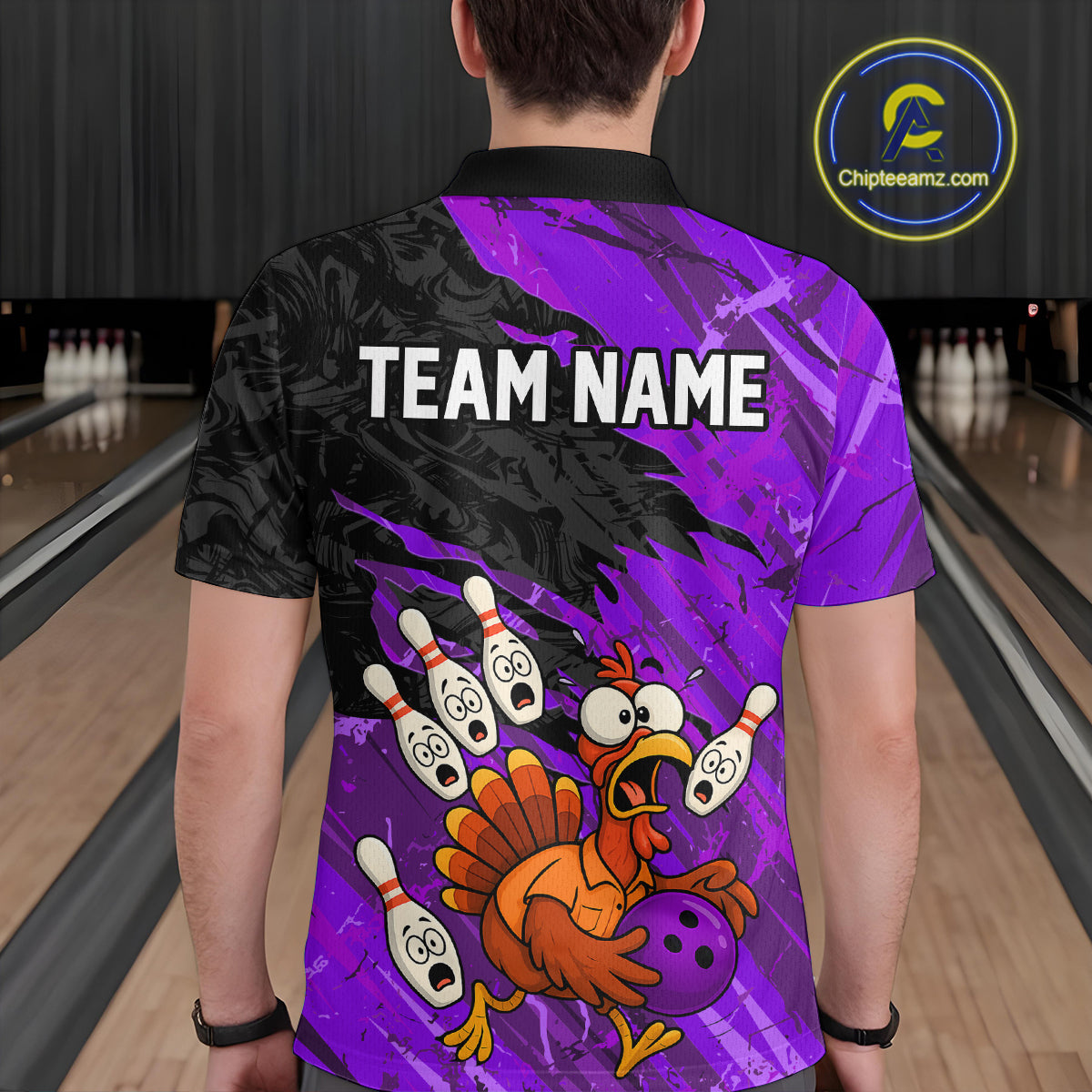 Custom Purple Turkey Bowling Shirt Funny Ball Pin League Jersey for Men Polo Outfit QZT765