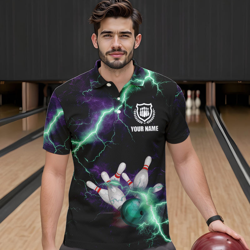 Men bowling shirts Custom Purple green lightning thunder Bowling Team Jersey, gift for team Bowlers NQS9601