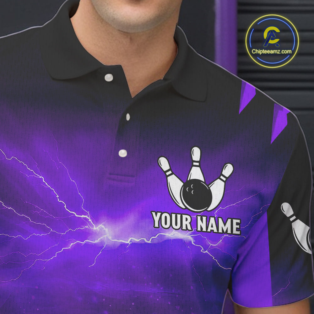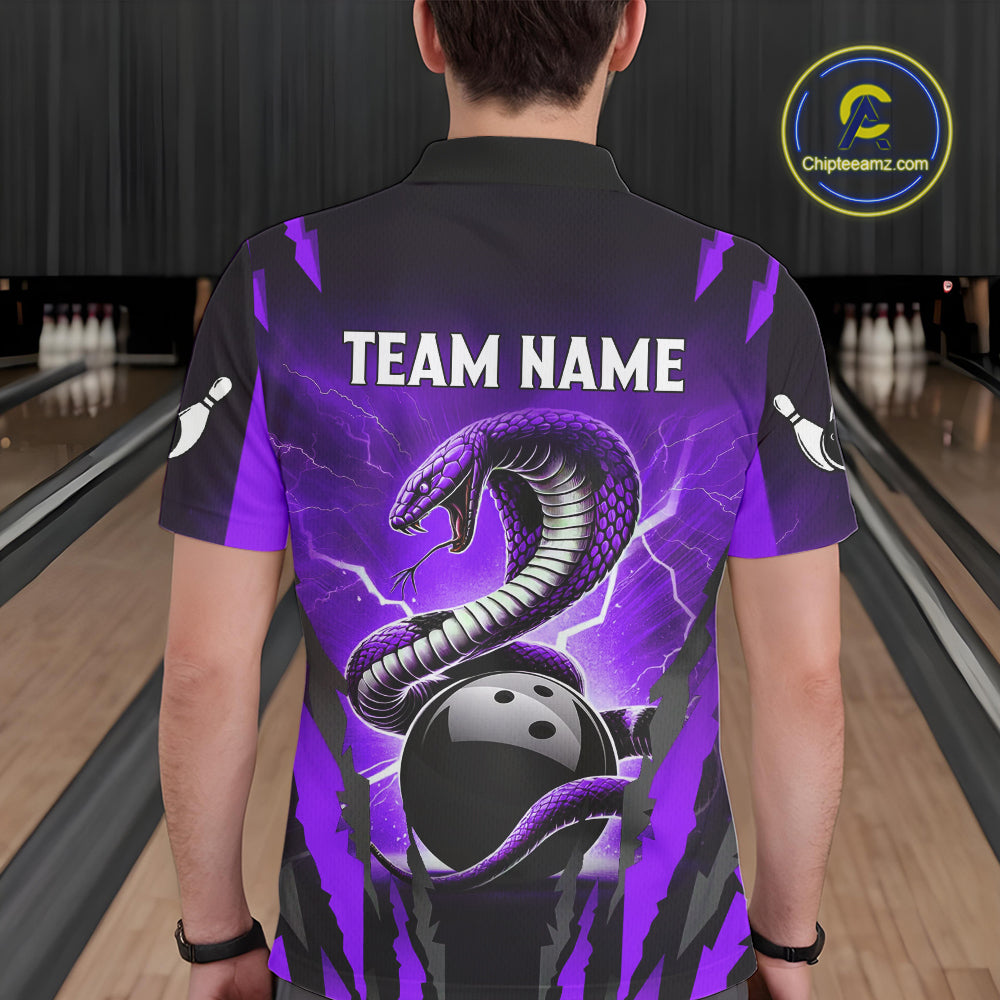 Personalized Purple Thunder Lightning Cobra Snake Bowling Shirts For Men, Bowling Team Jersey TDM4645
