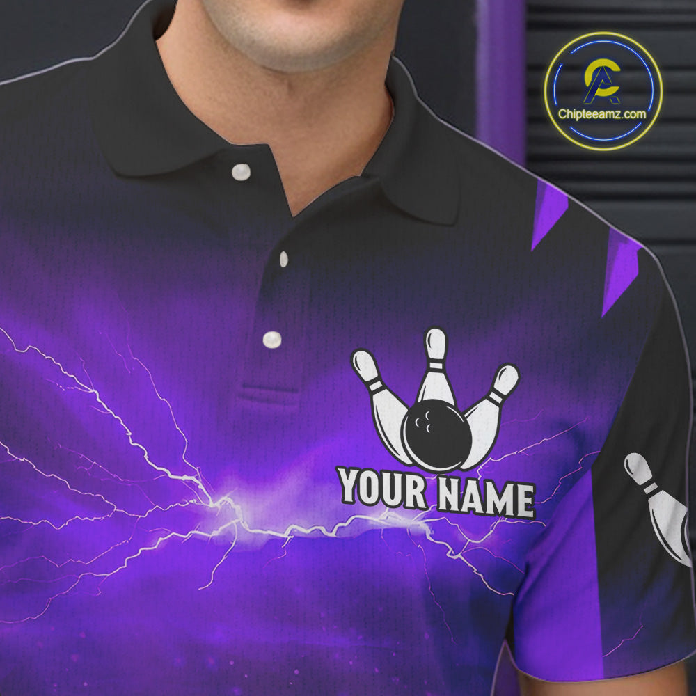Purple Thunder Lightning Custom Wolf Bowling Shirts For Men, Bowling Team Jersey Polo & 1/4 Zip TDM4646