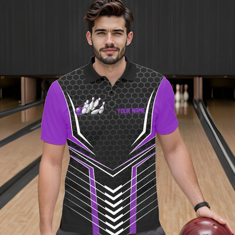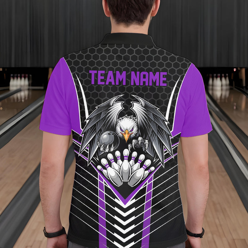 Custom Black And Purple Eagle Bowling Jerseys, Bowling Team Men Polo Shirts Bowlers Outfits IPHW8749