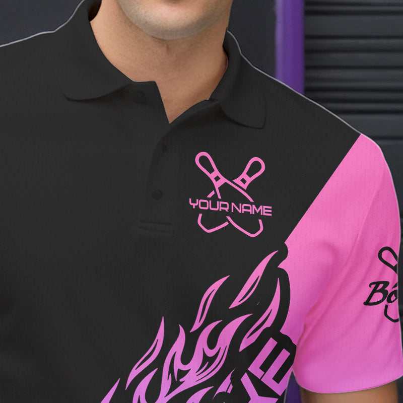 Blue, Purple And Pink Custom Strike Bowling Men Polo Shirts, Bowling Team Shirt Bowler Outfit IPHW8826