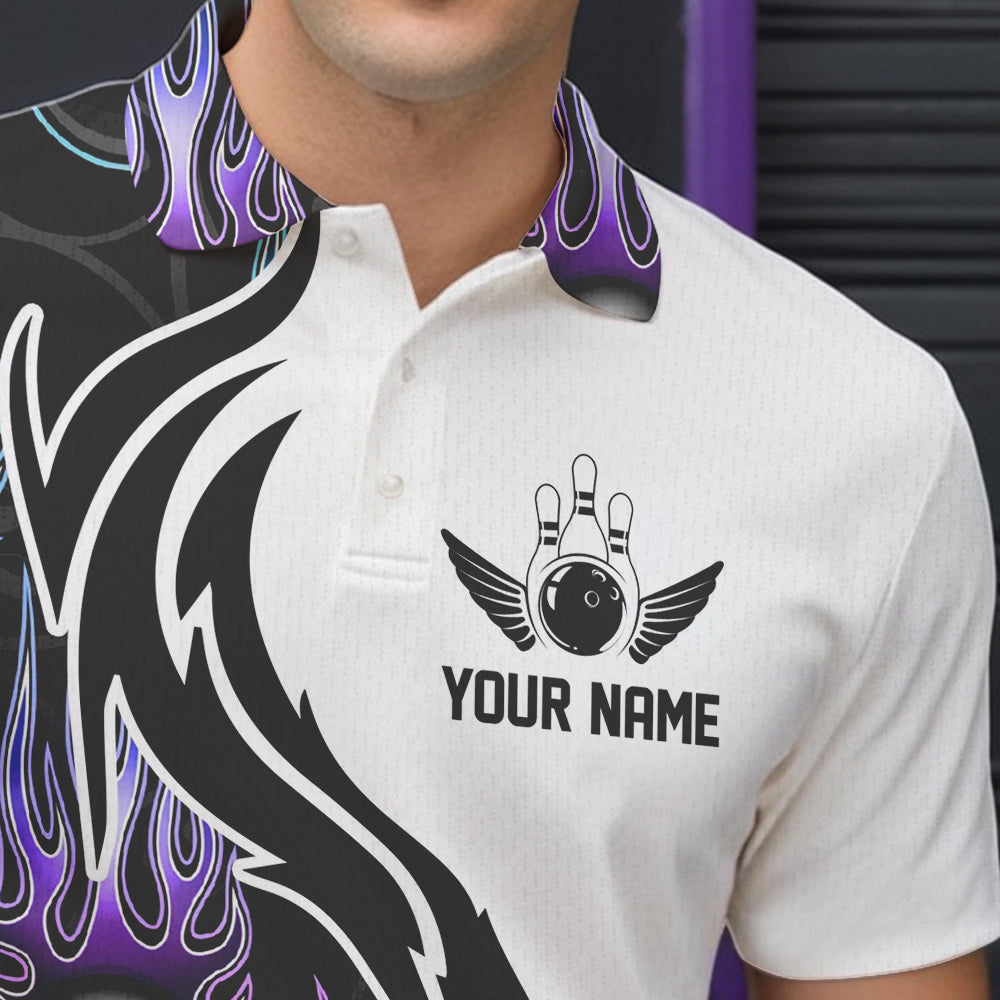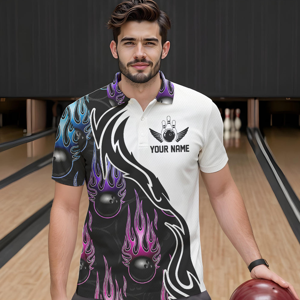 Pink Purple Blue Flame Ball Custom Bowling Team Men Polo Shirts, Fire Bowling League Shirt IPHW8864