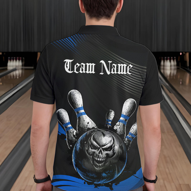 Custom Black And Purple Grunge Style Skull Bowling Polo Shirts For Men, Bowling Team Uniform IPHW8909