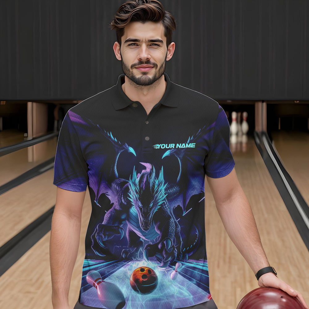 Custom Blue And Purple Dragon Bowling Jerseys, Dragon Bowling Team Polo Shirts For Men IPHW8954