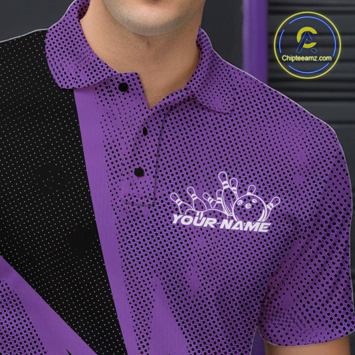 Custom Purple Bowling Jerseys, Bowling Team Men Polo Shirts Bowling League Shirt IPHW9391