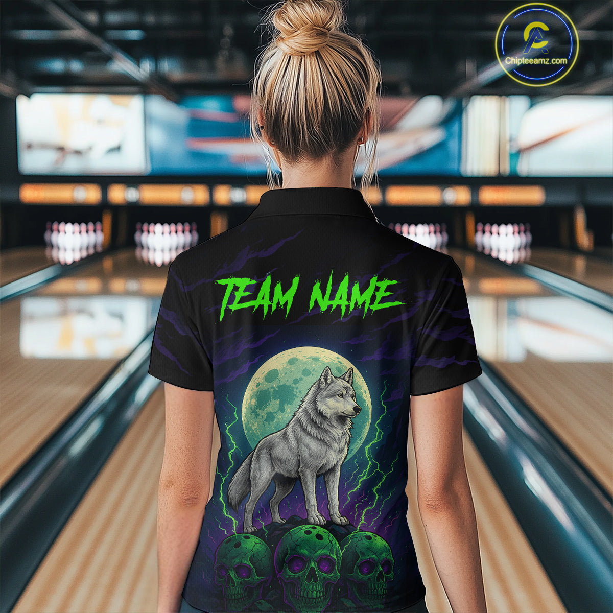 Purple And Green Wolf & Skull Bowling Team Shirt for Women Custom Bowling League Jersey Bowling Unisex QZT732