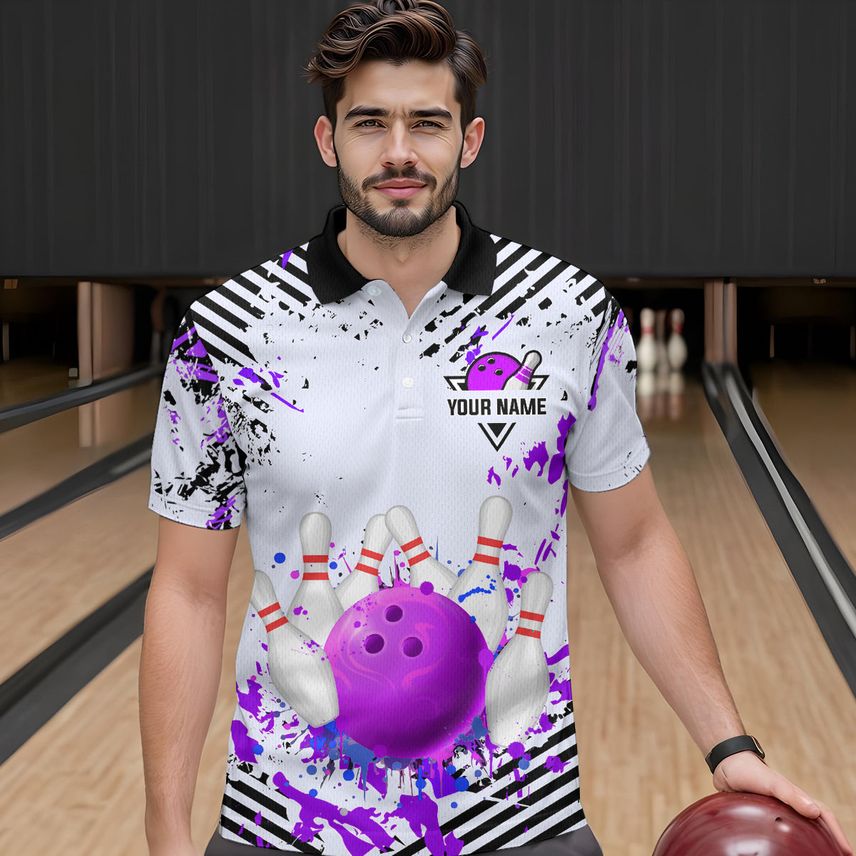 Purple Bowling Shirts Custom Watercolor Bowling Jersey for Men Women with Team Name MBL53