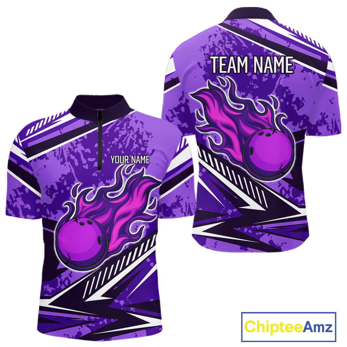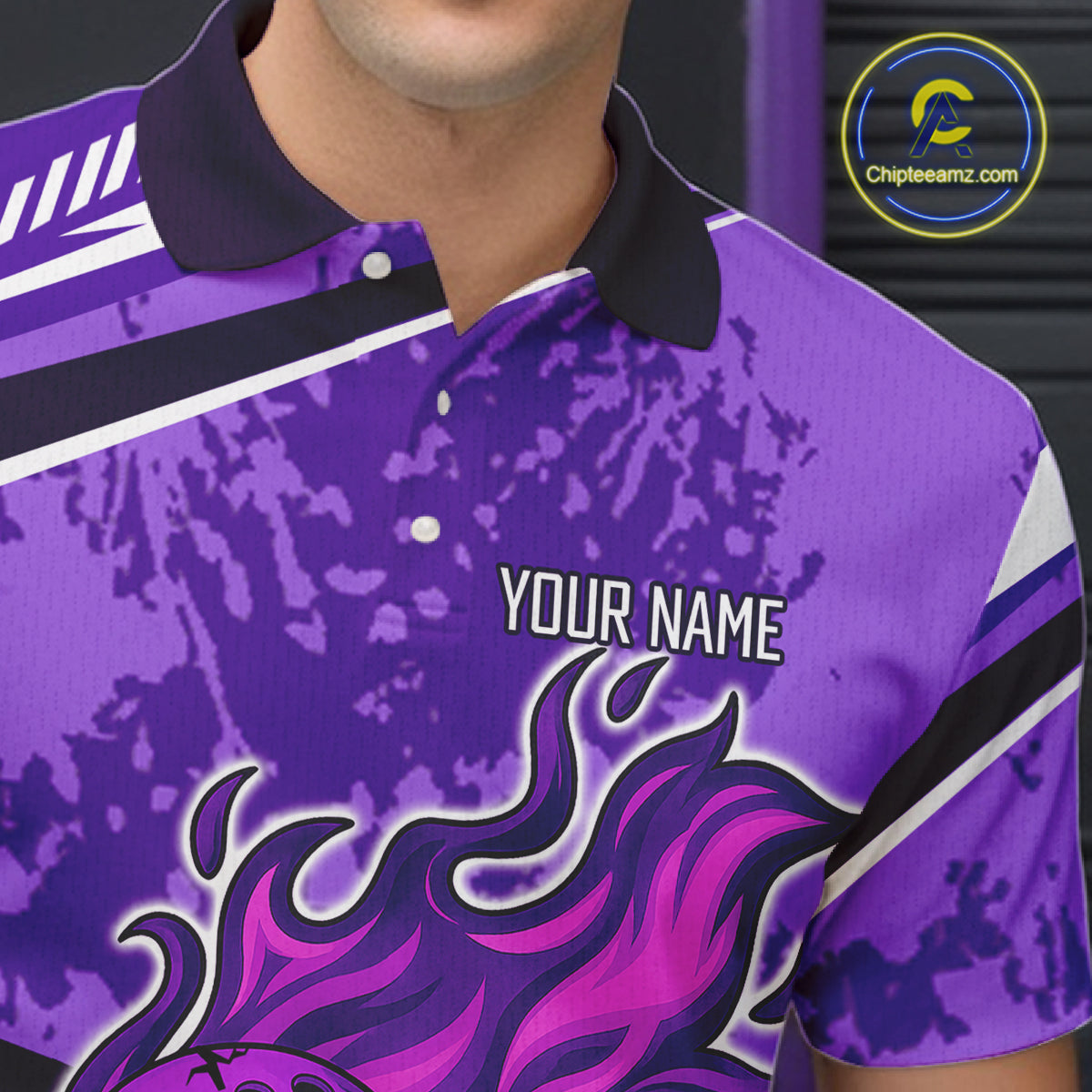 Purple Camo Flame Bowling Shirts For Men Custom Bowling Team Jerseys NQS10754