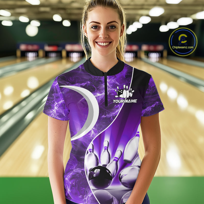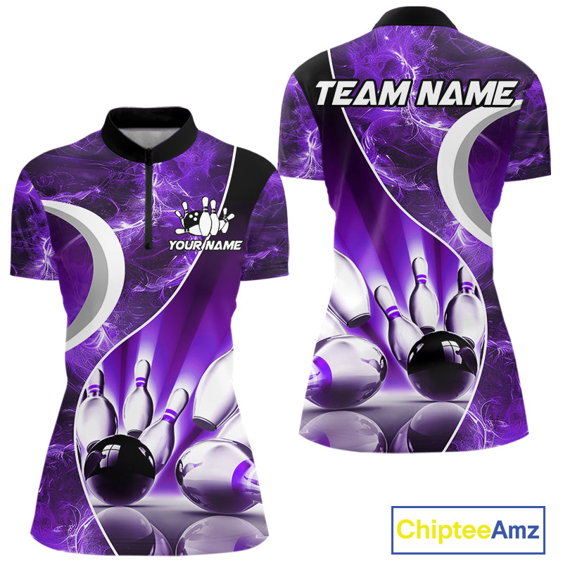 Purple Light pattern Bowling Polo, Quarter Zip shirts for Women Custom Bowling Team League Jerseys NQS9948