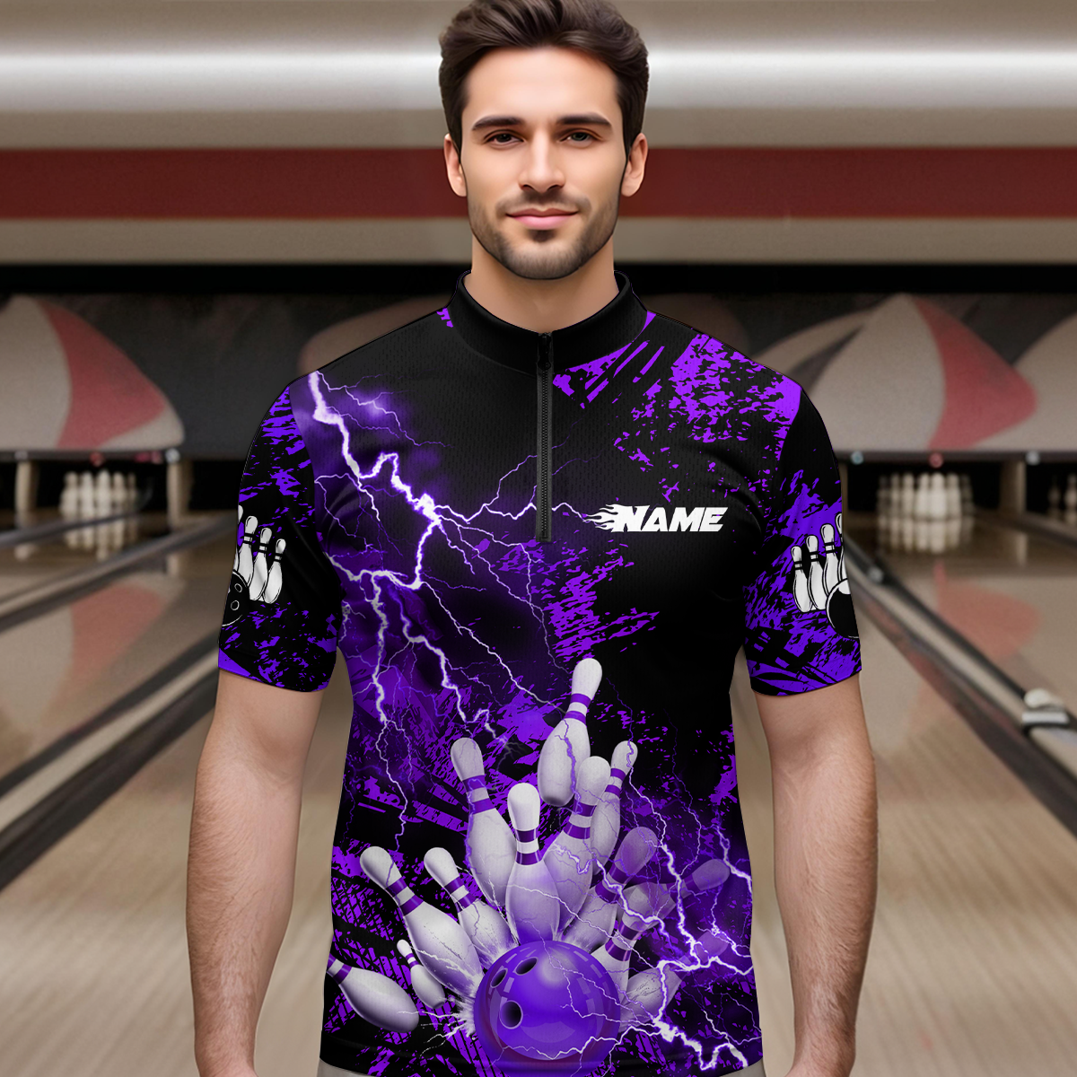 Purple Thunder Lightning Bowling Shirt Custom Colorful Bowling Jersey Men Women Team MBL67
