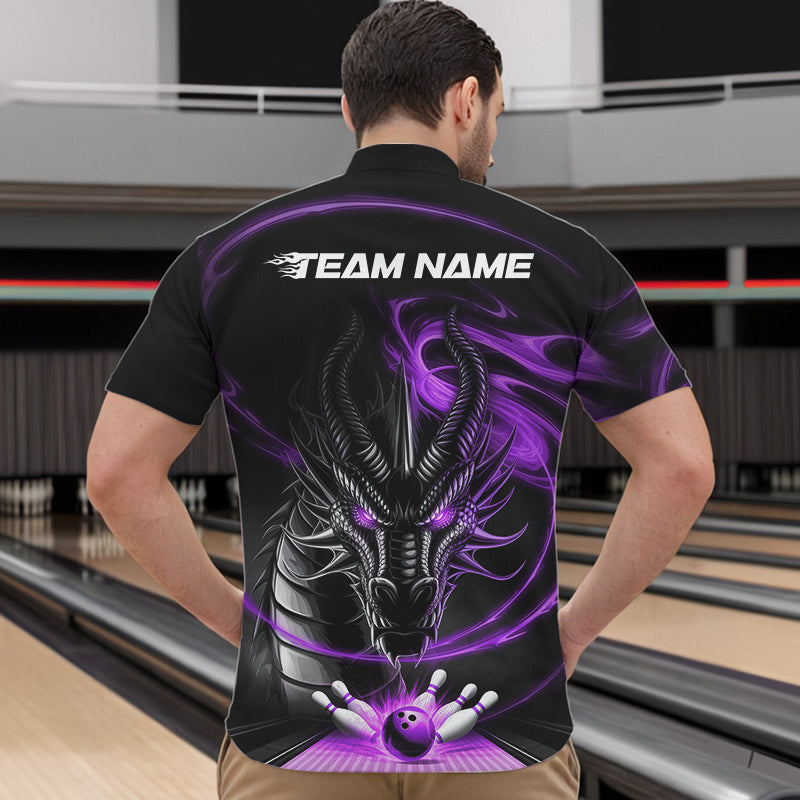 Custom Black And Purple Flame Dragon Bowling Team Men Quarter-Zip Shirts, Bowling League Shirt IPHW8912