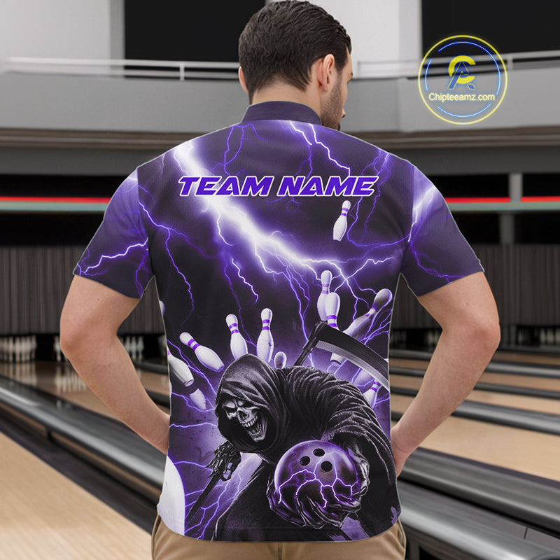 Custom Purple Thunder Lightning Grim Reaper Bowling Men Quarter-Zip Shirt, Halloween Outfit IPHW9799