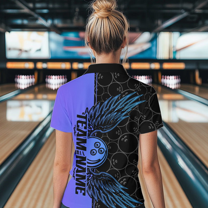Blue And Purple Custom Bowling Tournament Women Quarter-Zip Shirts, Bowling Ball And Wings IPHW8845