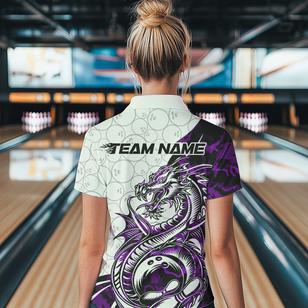 Custom Purple Camo Dragon Bowling Tattoo Women Quarter-Zip Shirts, Bowling League Shirt IPHW8885