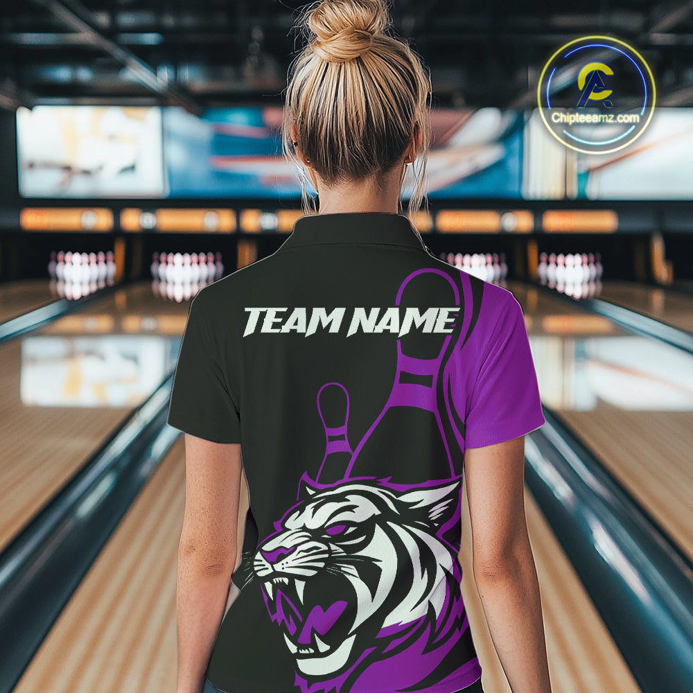 Custom Black And Purple Tiger Bowling Jerseys, Tiger Bowling Team Women Quarter-Zip Shirt IPHW9017