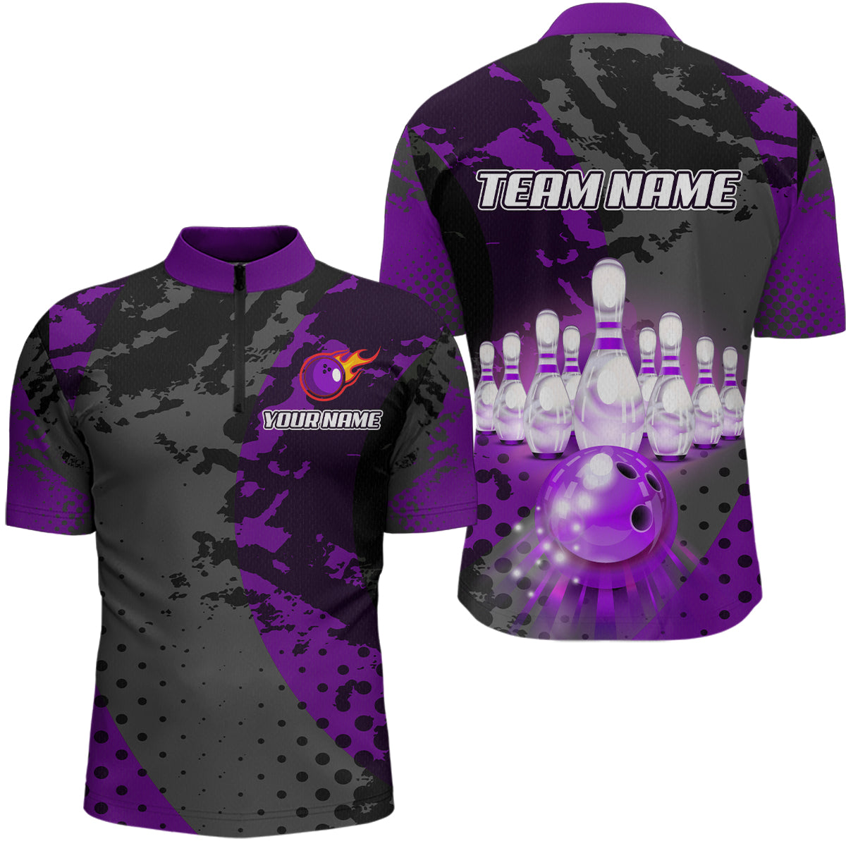 Fire Bowling Shirt Custom Purple Bowling Jersey for Men Women with Team Name MBL63