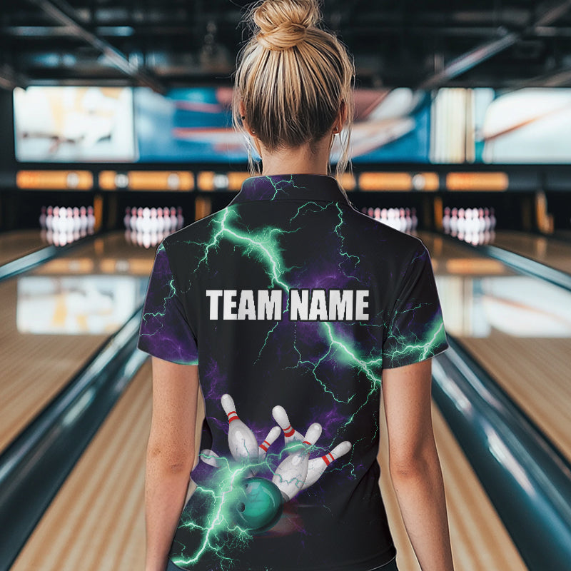 Women bowling shirts Custom Purple green lightning thunder Bowling Team Jersey, gift for team Bowlers NQS9601