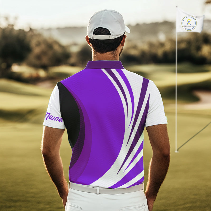 Mens polo golf shirts custom name purple and white golf shirt, team golf shirts mens NQS9845