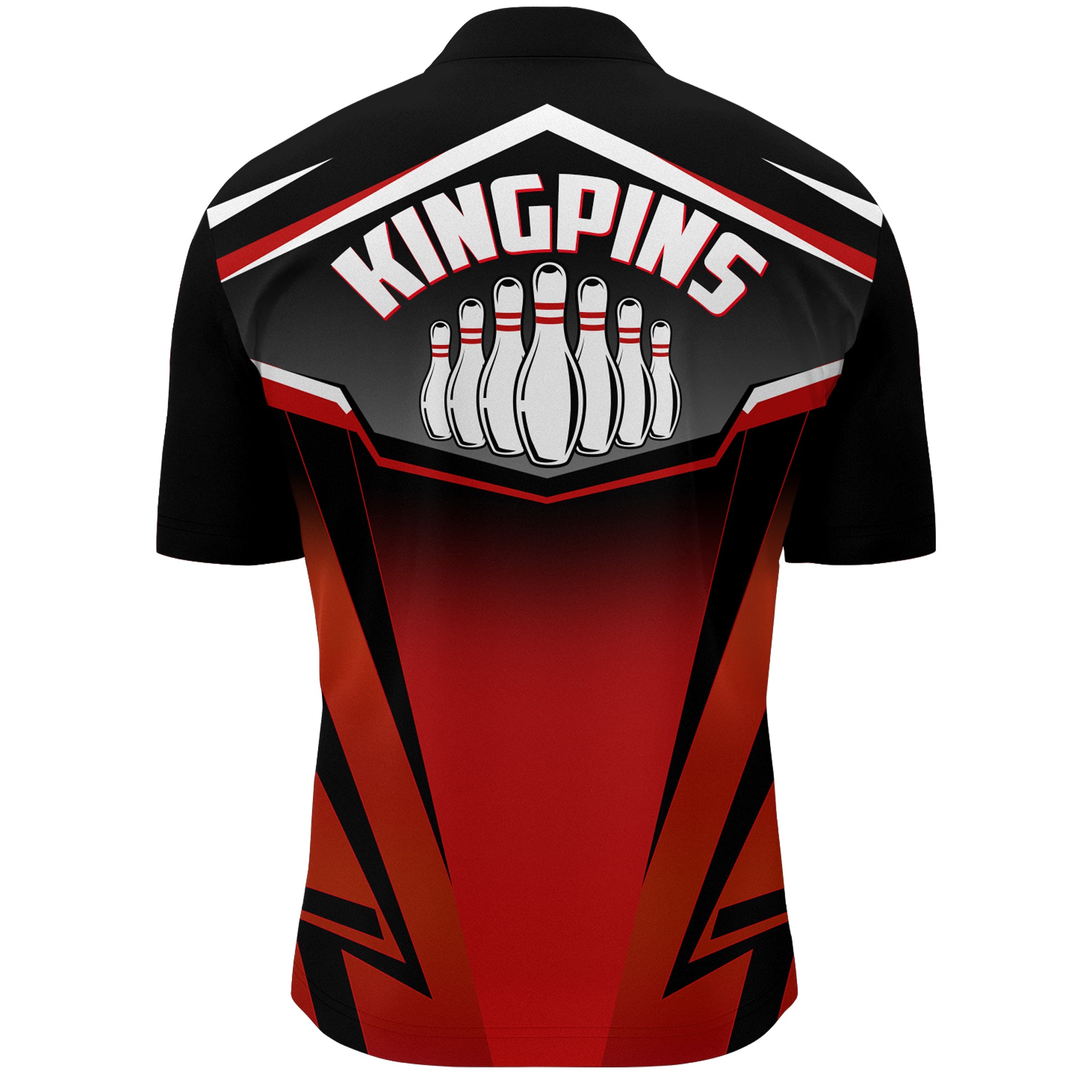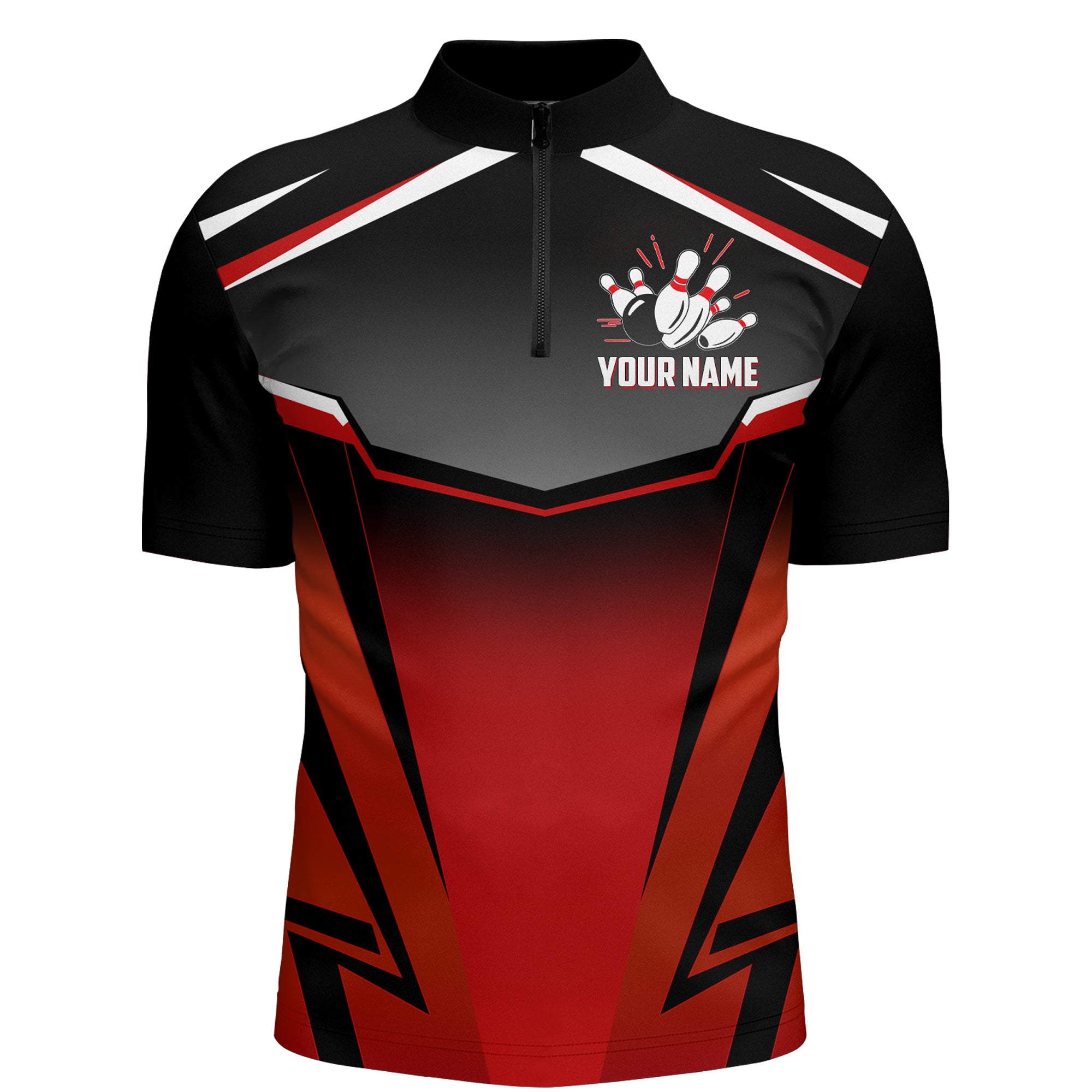 Custom Bowling Shirt for Men, Kingpins Red Quarter-Zip Bowling Shirt with Name, Men Bowlers Jersey NBZ180