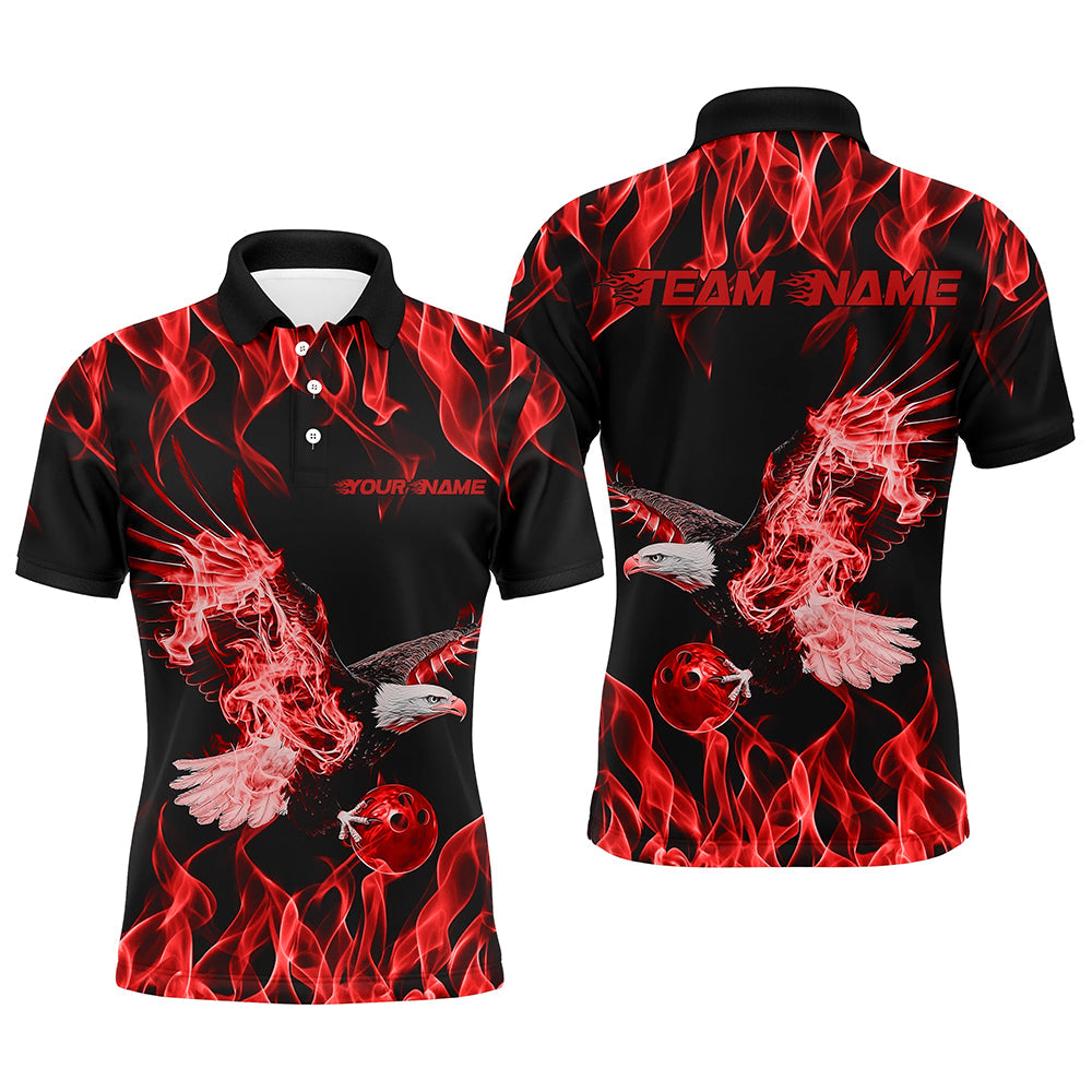 Red Flame Eagle Custom Bowling Team Shirts For Men, Fire Bowling League Shirt Bowler Outfit IPHW7946