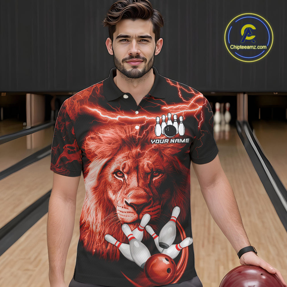 Personalized Red Lightning Thunder Storm Lion Bowling Shirts For Men Custom Bowling Team Jerseys NQS9840