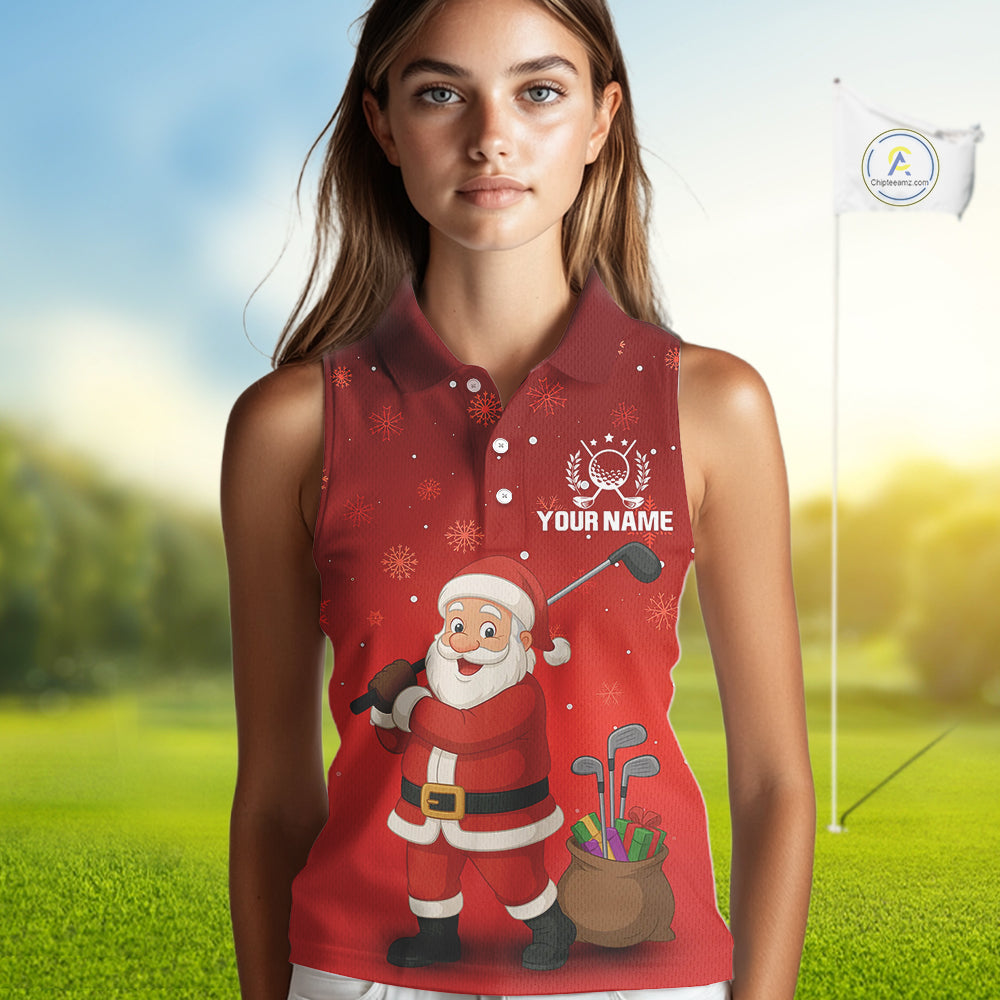 Funny Santa Golf Red Christmas snowflake pattern Sleeveless Golf Polo shirts Custom Xmas Golf Outfits NQS10993