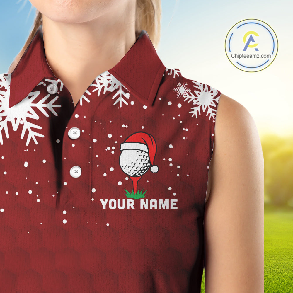Red Christmas Golf Ball snowflake Women Sleeveless Polo Shirt Custom Xmas Team Golf Outfits NQS10950